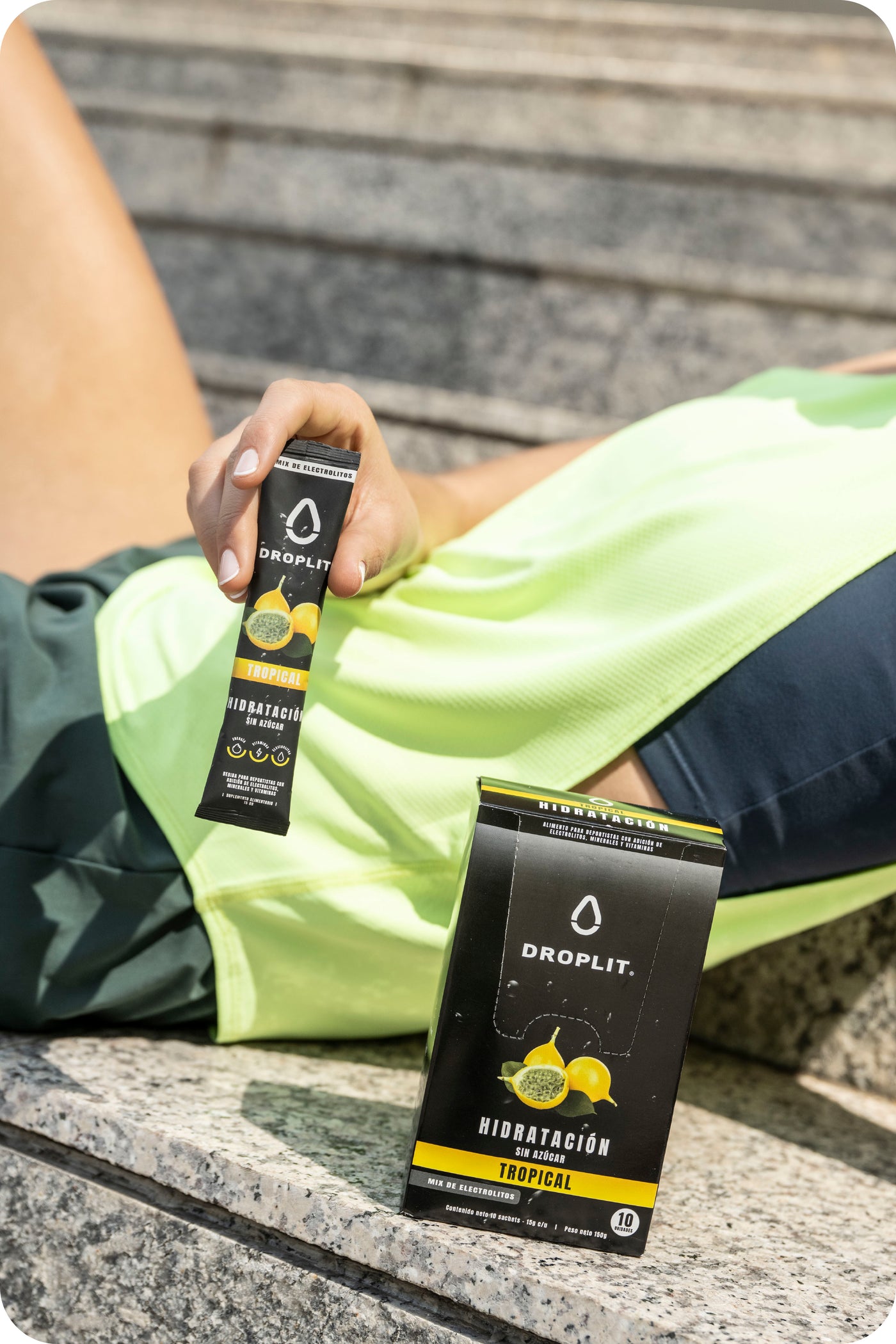 “Droplit ayuda a reponer electrolitos de forma eficiente, apoyando tu rendimiento y recuperación, sin cargar tu cuerpo con azúcares innecesarios.”